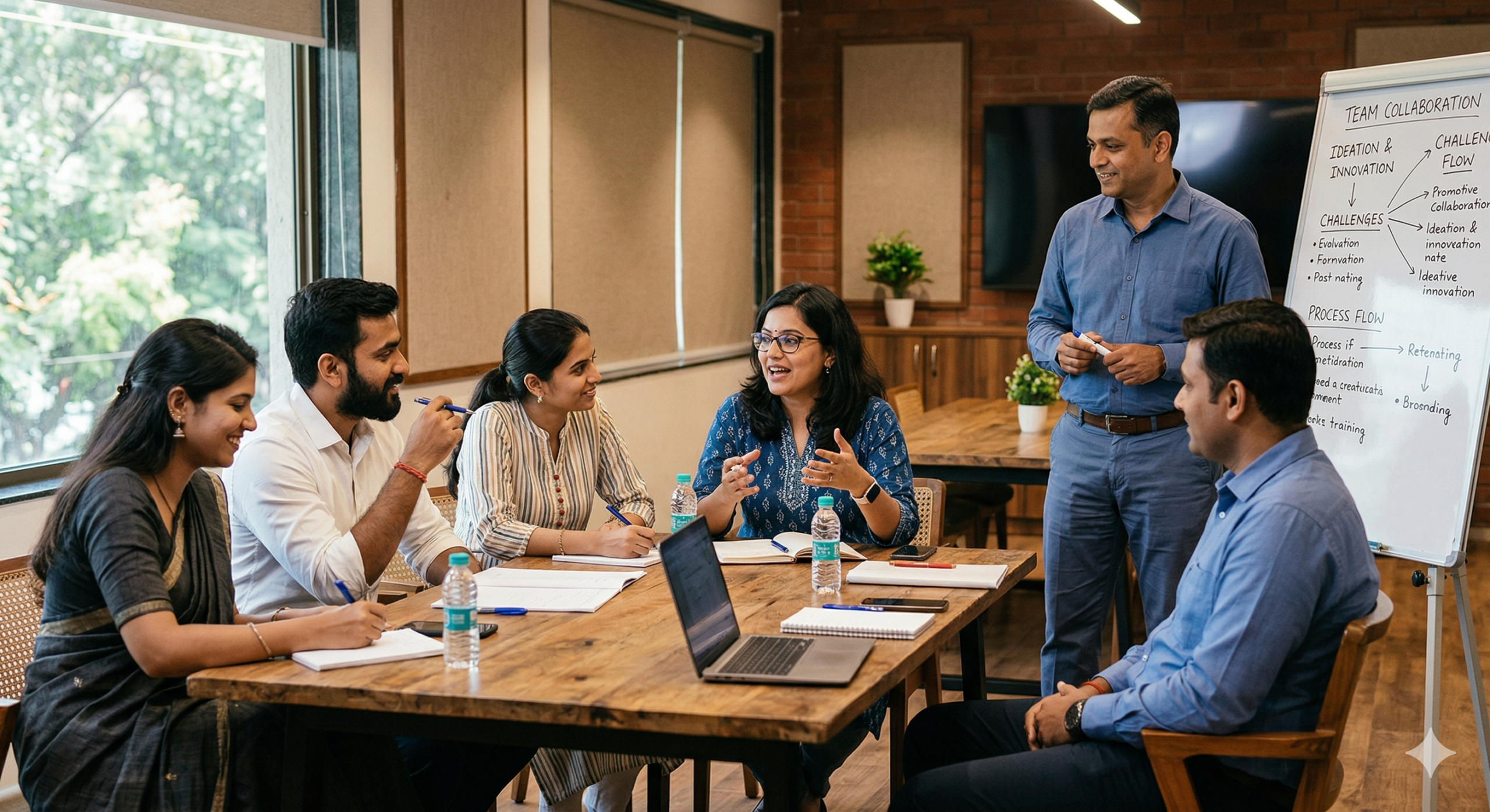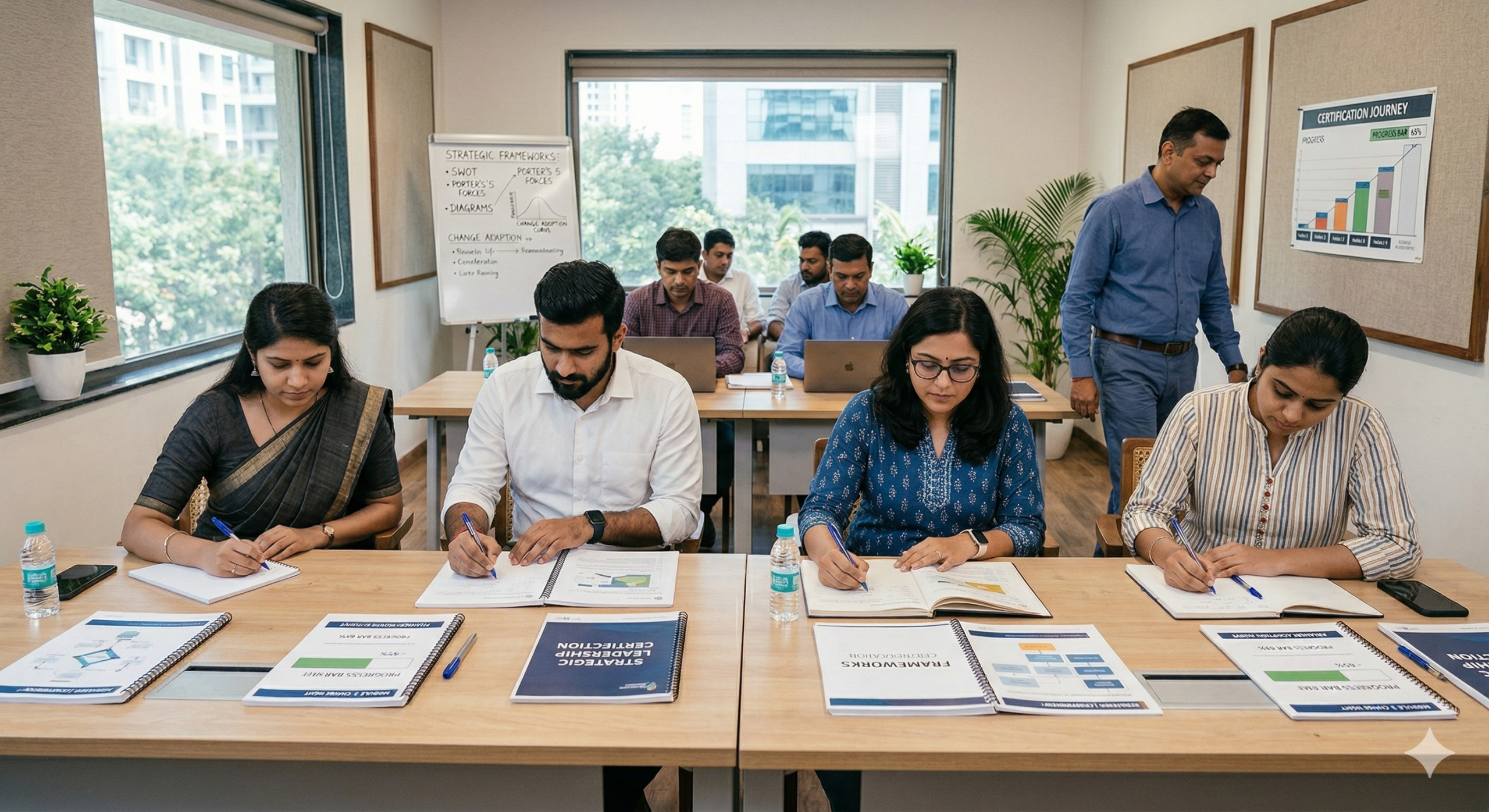 Role plays, case studies, brainstorming exercises, live presentations, and self-reflection assignments. The room does the work — the facilitator holds the quality of the conversation